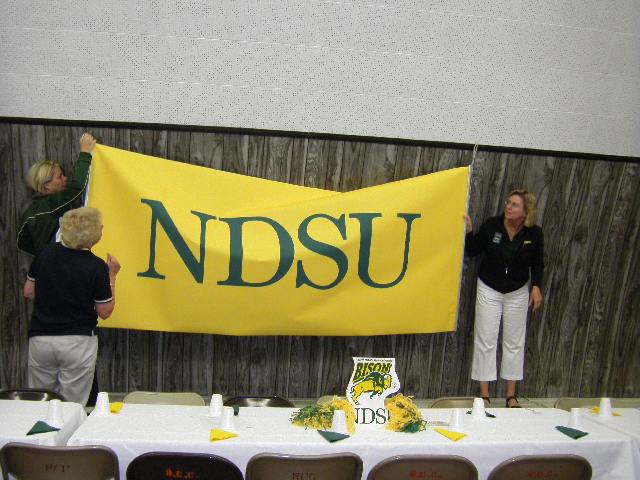 DC Coston emceed the short program. Pam Gulleson, our local legislator in the House of Representatives, introduced President Joe Chapman. He had all the NDSU staff introduce themselves and he talked about NDSU’s progress and future goals. Saul Phillips spoke about being in Division I and how excited he is to be a part of a progressive university such as NDSU. Then DC introduced Deborah Banish and Carolyn Christensen who made a brief presentation on Rutland’s involvement with the Horizons Program. Deb developed the power point that was used and it was super. If we were good, it was thanks to her skill with the computer.