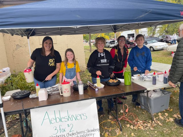 Sunday, October 2, 2022, Uffda Day, was a great day although it started out as questionable, with an overcast sky and sputtering rain showers as the 5k Run/Walk got underway at 8:00 a.m., but it just got nicer all day long, with increasing sunshine and just enough of a breeze to keep the flies grounded. More than 3,000 lefse, 18 roasters of scalloped potatoes with ham, more roasters full of rice pudding, gallons of rommegrot, hundreds of krumkake, sandbakkels & abelskievers, Uffda tacos, hot dogs and bratwursts had been consumed by the time activities started to wind down. All that was left was the aroma of good cooking.