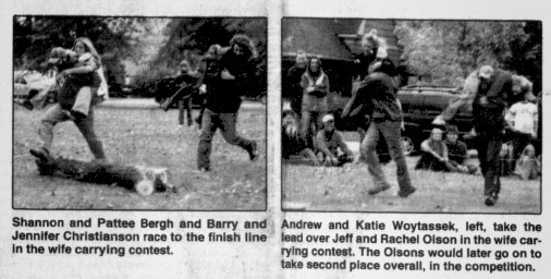 Another new event this year was a Wife-Carrying Contest that drew a crowd to watch the fun.
