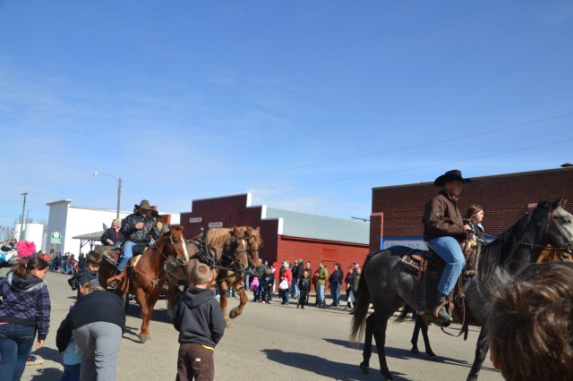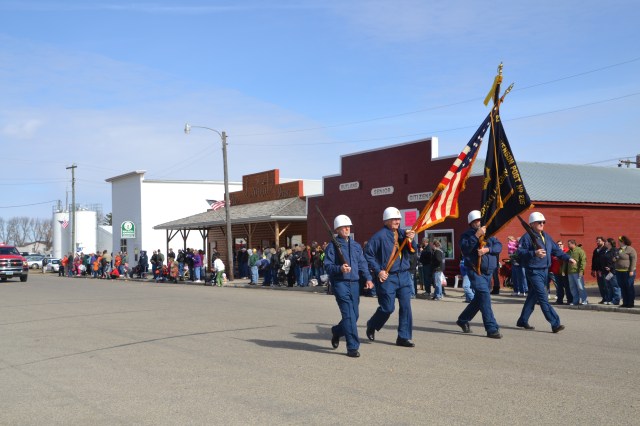 The cold weather kept most visitors inside throughout the morning, enjoying coffee, conversation and a lot of good things to eat, along with visiting the craft booths in town. By the 1 p.m. parade time, the wind had gone down to a gentle breeze the temperature climbed into the upper 50s. The parade was a little shorter than last year consisting of 55 units that included several political candidates. There were a number of interesting entries in the parade but the biggest hit of the parade was undoubtedly the Aberdeen Fire Department Bagpipe Band from Aberdeen, South Dakota. With bagpipes wailing and drums beating, the band members wowed the crowd, many of whom had never heard bagpipe music that actually sounded like music. Following the parade, the pipers also performed at several locations on main street, in front of the Hall, and at the Fire Hall.