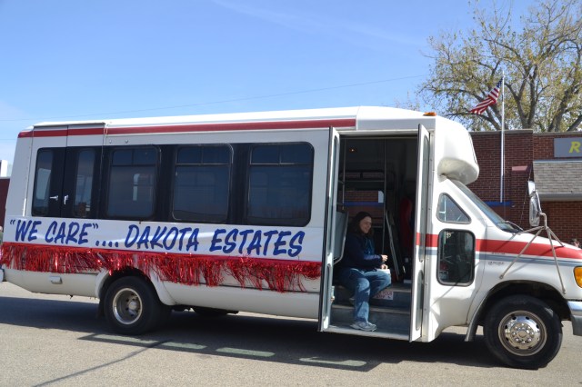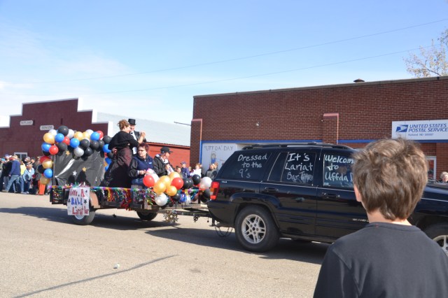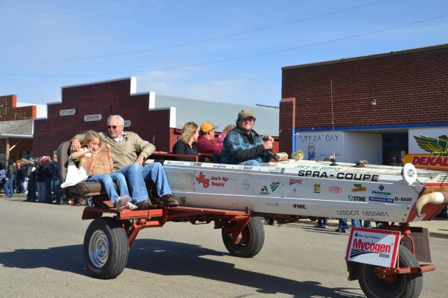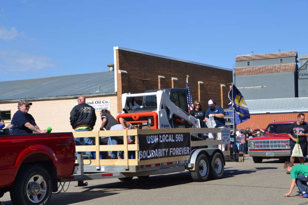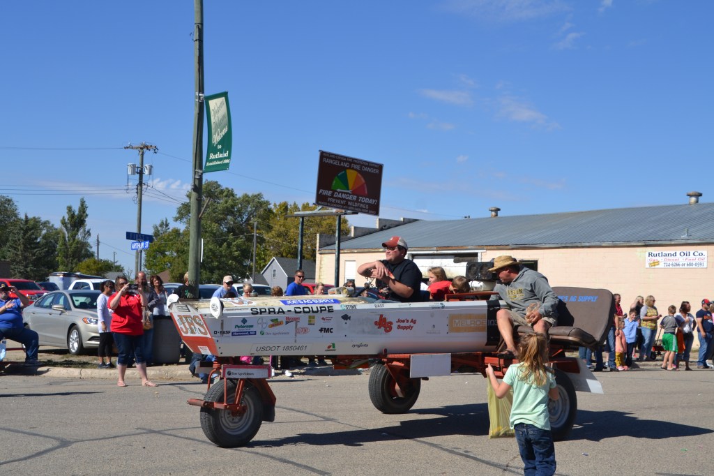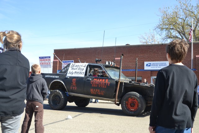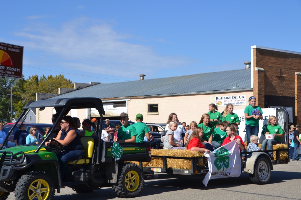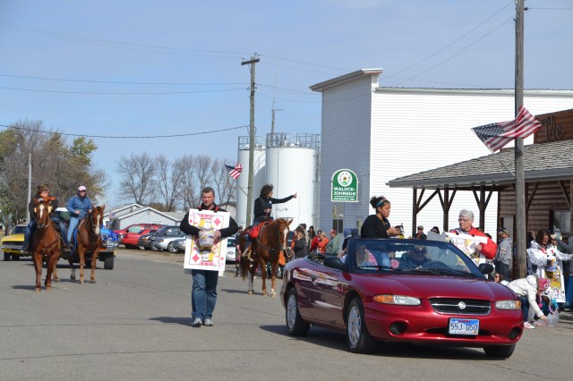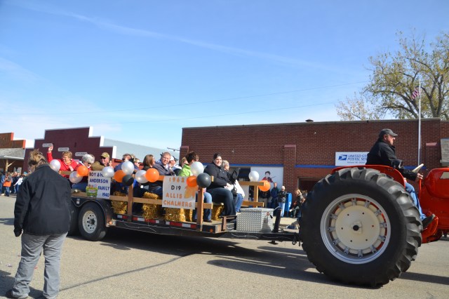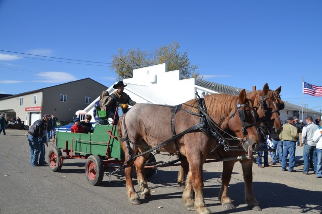 Dave and Pat Bladow organized another outstanding display of antique and classic motor vehicles that included a classic Packard sedan and a unique Lincoln pickup. By parade time, the wind went down aa little and temperature reached the mid-50s with an enthusiastic crowd along the parade route. The parade was a little shorter than the prior year, consisting of 50 units and political candidates were scarce for an election year. The American Legion Color Guard lead the parade and the hit again this year was the Aberdeen Fire Department Bagpipe Band from Aberdeen, South Dakota. The band members wowed the crowd with the wailing bagpipes and beating drums.