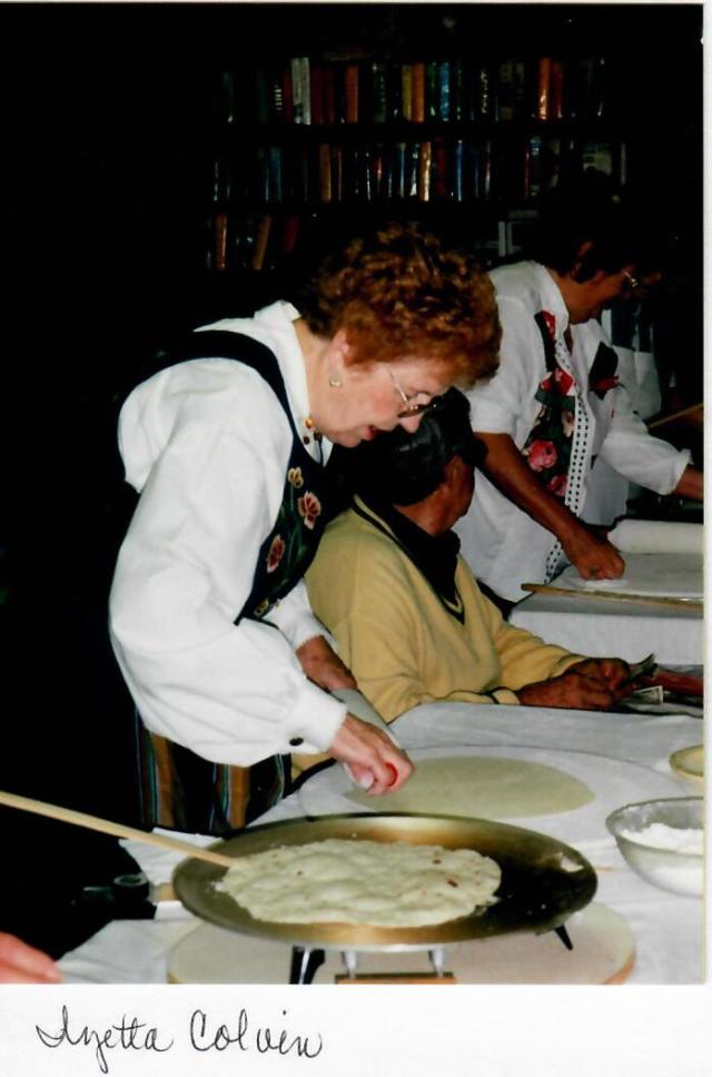 A large crowd was on hand throughout the day, enjoying the many exhibits, demonstrations and craft booths as well as the many examples of Scandinavian ethnic cuisine which were available in several locations. Scalloped potatoes, rommegrot, rice pudding, krumkake, sandbakkels, lefse and home-made ice cream were all devoured by event goers. The three co-chairs for 2001, Hall Nelson, Kris Nerison and Shari Leinen, made the event a resounding success with the help of many individuals who worked before, during and after the event.