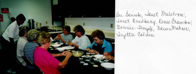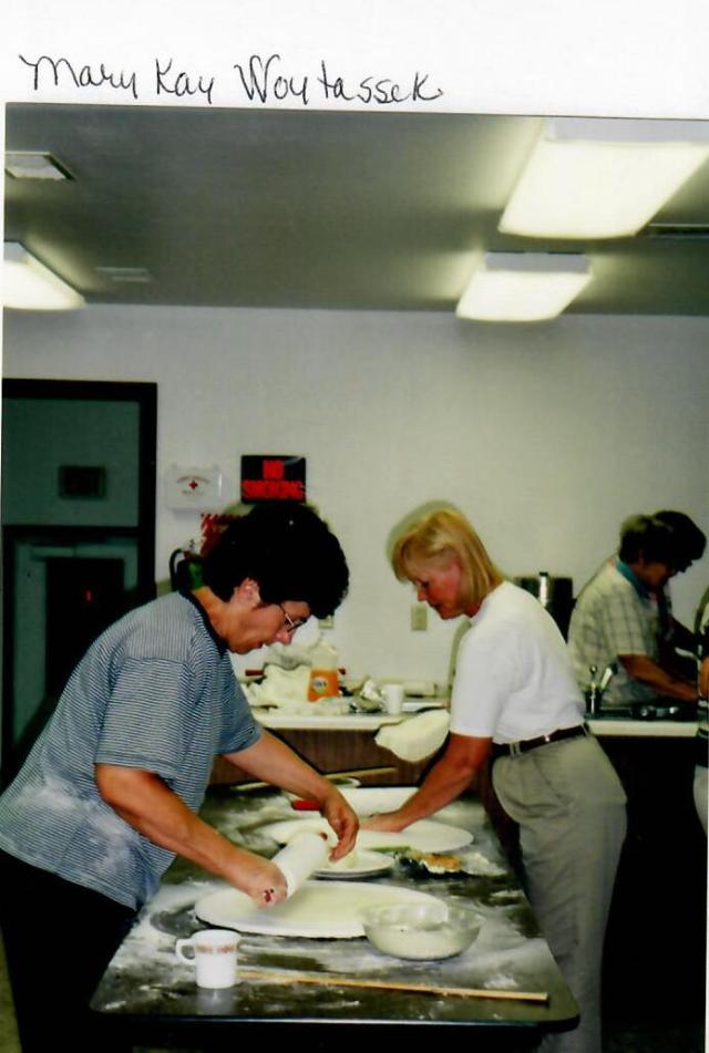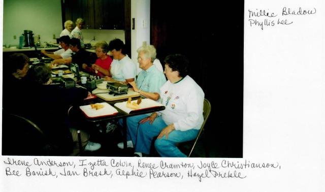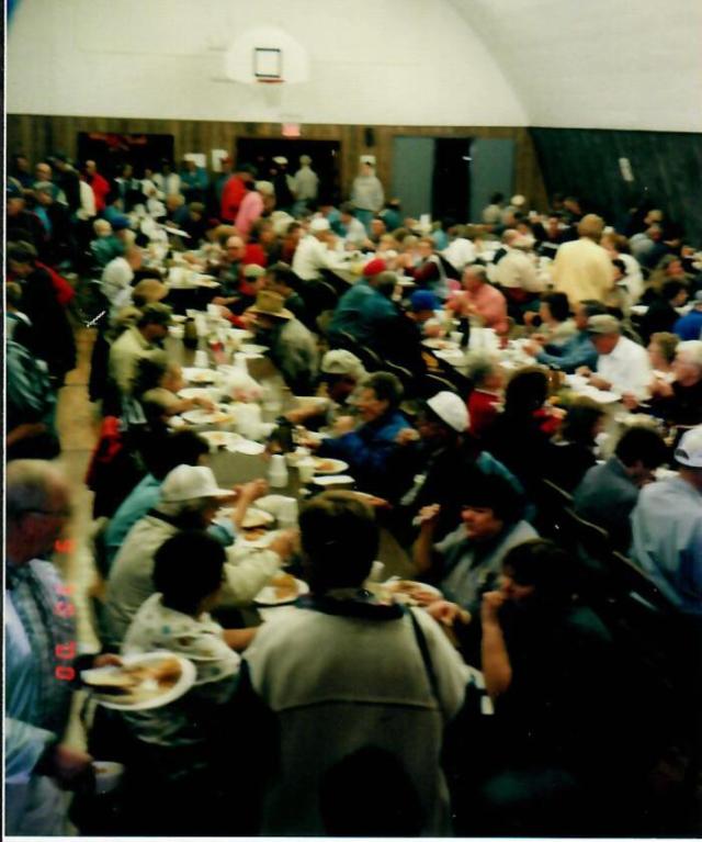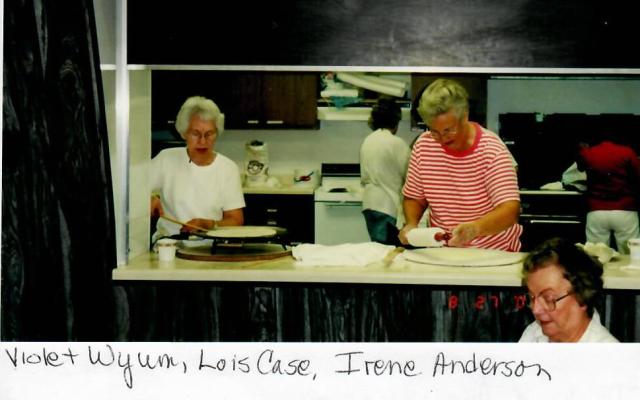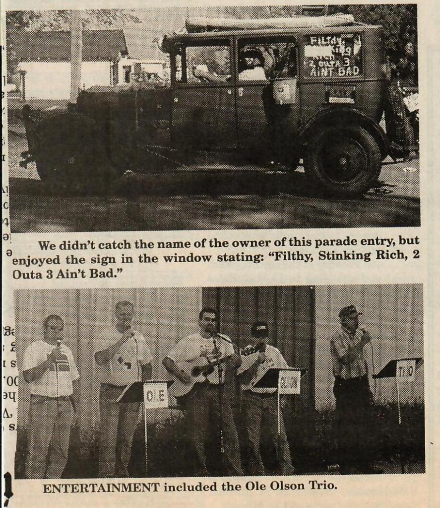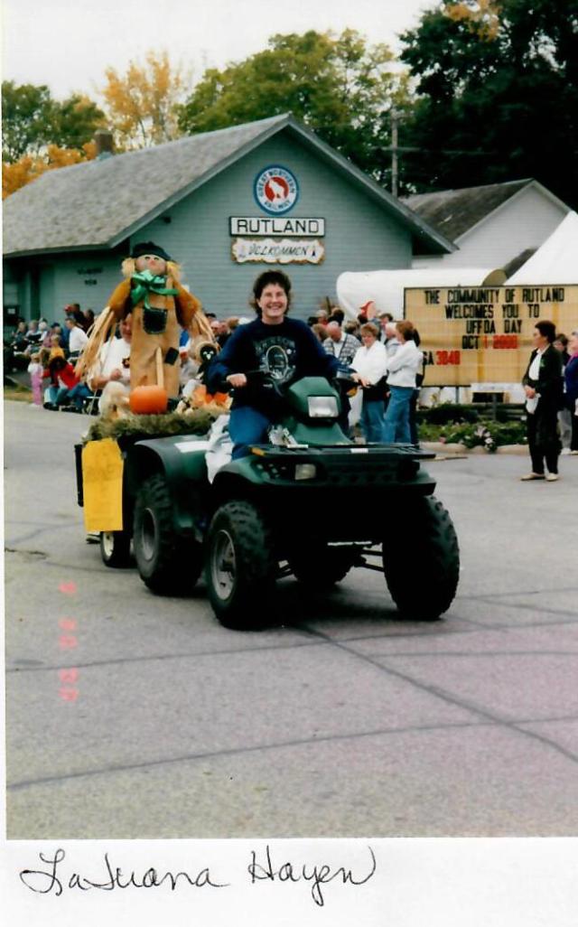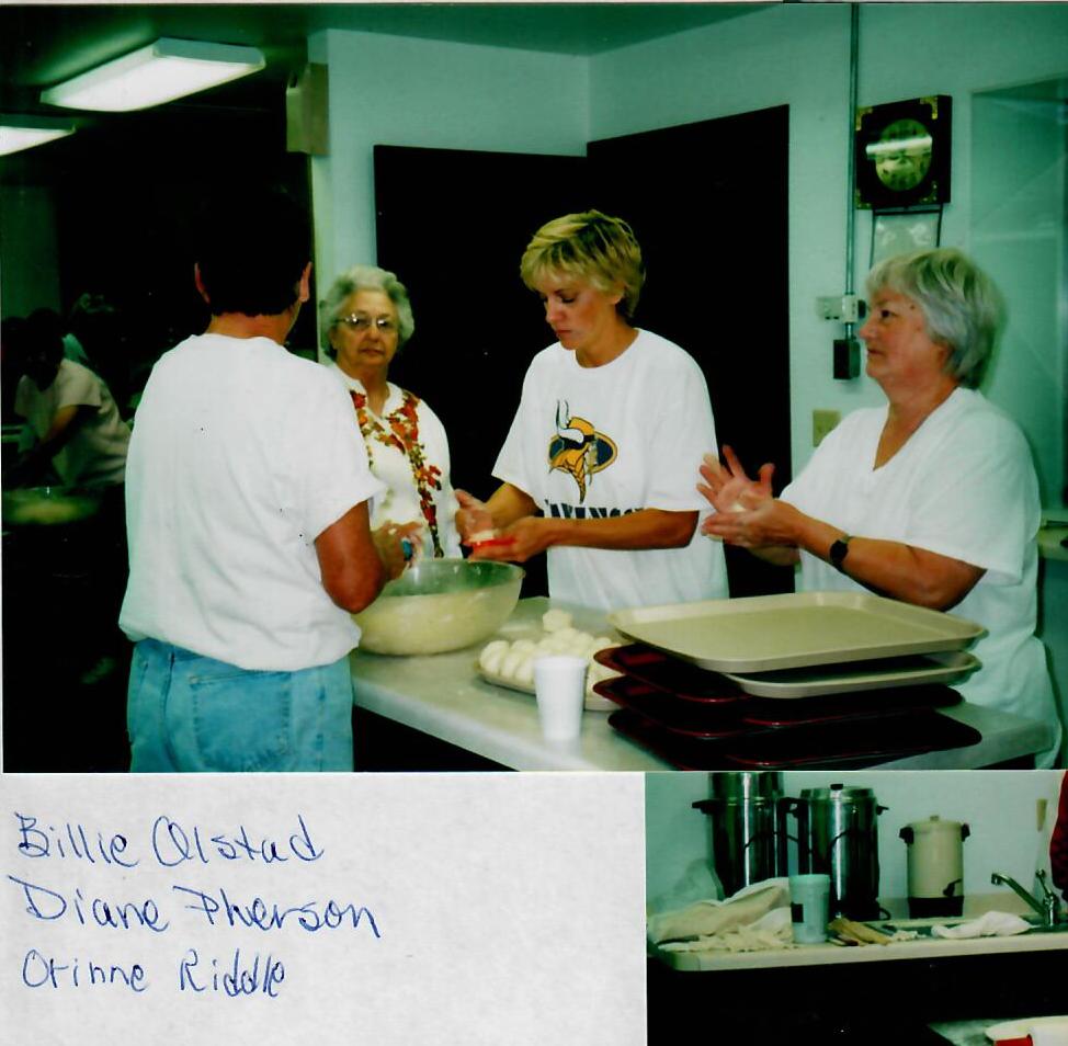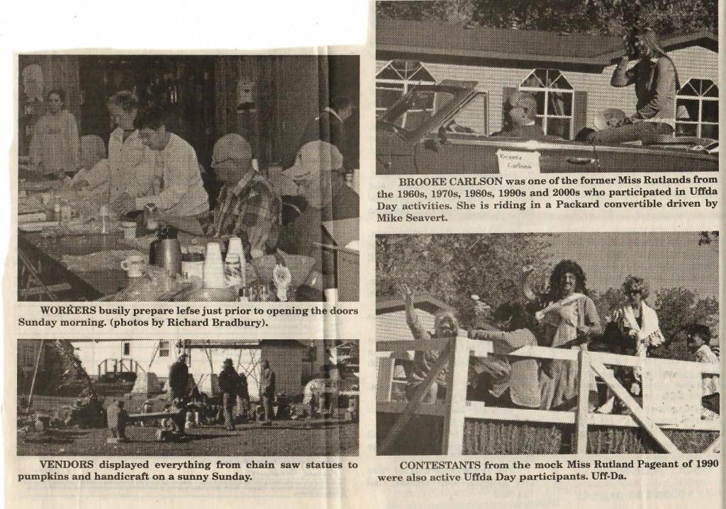 Uffda Day 2000 was another resounding success, according to co-chairpersons Lori McLaen, Hal Nelson , and Kris Nerison. The large crowd in town was undeterred by the overcast skies and a light rain shower that afternoon. Much of the success was due to the preparation by a diversity of workers from age 8 to 89. In preparation for the event, 4,515 pieces of lefse had been rolled – the most to date – with help from the Rutland High School alumni, over a period of four weeks.
