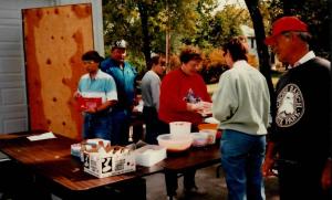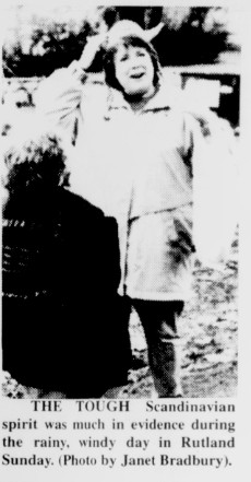 The weather not only failed to cooperate on Uffda Day but the weatherman failed to show up as well. Weatherman Bruce Asbury of KXJB-TV Channel 4 in Fargo had planned to be in the Uffda Day parade but was stopped by the weather. While on his way from Fargo, Asbury reported that he ran into such a violent storm just south of Wahpeton he feared that his TV camera truck would be blown off the road. Concluding that there would be no parade in Rutland with such weather, Asbury turned around and headed back to Fargo. He did accept an invitation to participate in the 1999 event and stated that he would attend rain or shine.