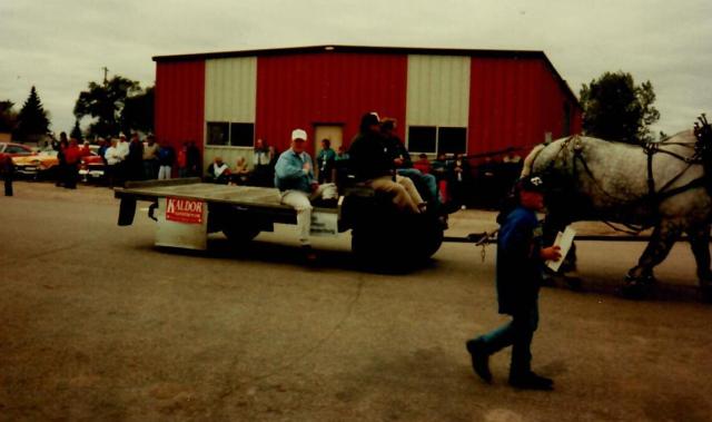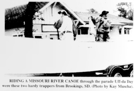 The 1996 Uffda Day Fall festival was held on a crisp and beautiful October day. The kickoff event was a parade of more than 65 units including the Viking ship manned by grizzled seafarers from the Viking Shrine Club and tractors from the Wild Rice Antique Tractor and Plowing Association. Governor Ed Schafer and Rep. Lee Kaldor, the Republican and Democratic-NPL candidates for Governor of North Dakota, along with their wives, headed a list of dignitaries participating in the parade. Other politicians were candidates for State Auditor, State Tax Commissioner, State Treasurer and others.