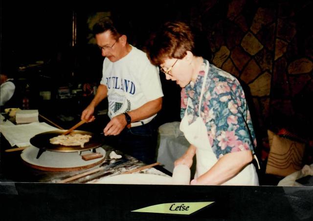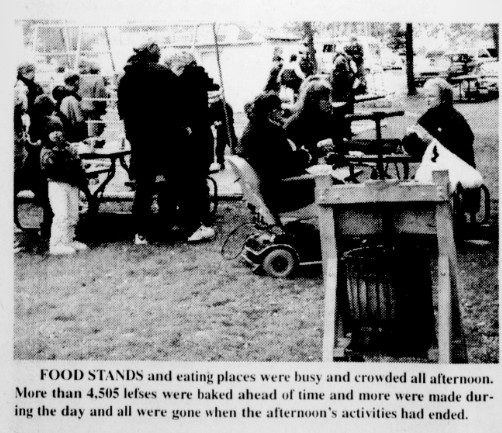 During the day the crowd consumed 4,500 lefse as well as a prodigious quantity of sandbakkels, krumkake, rosettes and other Scandinavian fare, while others enjoyed the scalloped potatoe dinner at the Hall.