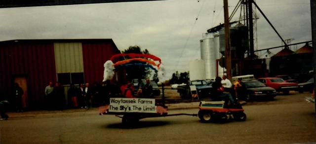 Despite the worst weather in the 14-year history of the event, Uffda Day 1998 was declared another unqualified success. The day’s weather started out gray, gloomy and windy. By 10 it was sprinkling, by 11 is was a drizzle but by the time the parade started at noon , a steady rain driven by a fierce east wind, pelted the area. Nevertheless, the parade was on schedule with more than 75 units including a Missouri River canoe manned by members of the Lewis and Clark Heritage Society of Brookings, SD. Some of the outside events, such as the tractor slow races and the horse-drawn wagon rides were canceled due to the weather but other events and activities went off as scheduled. Despite the 1.25 inches of rain that fell, it failed to dampen the spirits of anyone in Rutland. Uffda Day co-chairs were Doris Hoistad, Earl Cramton and Lori McLaen.