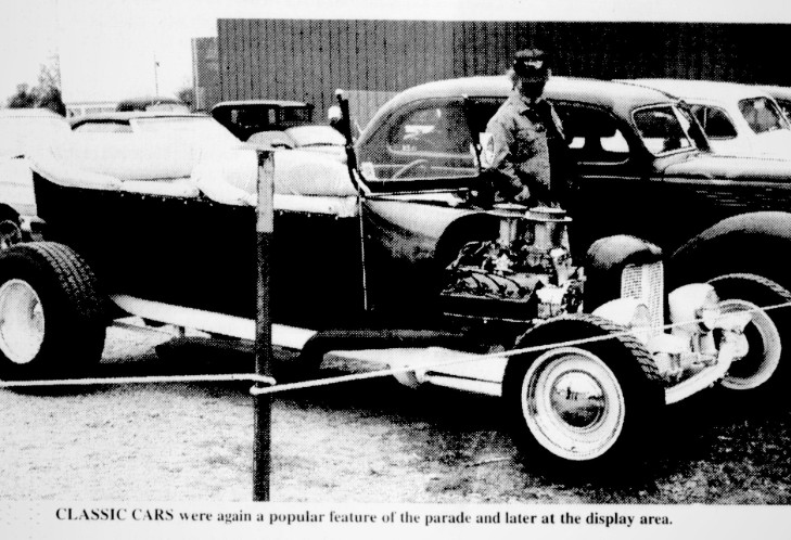 Auto buffs exhibited their beautifully restored classic and antique automobiles at the Kulzer Farm Supply lot on Main Street. The Norse Folk Dancing Club from the Bismarck Sons of Norway Lodge participated in the parade and put on several folk dancing performances during the afternoon.