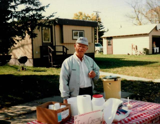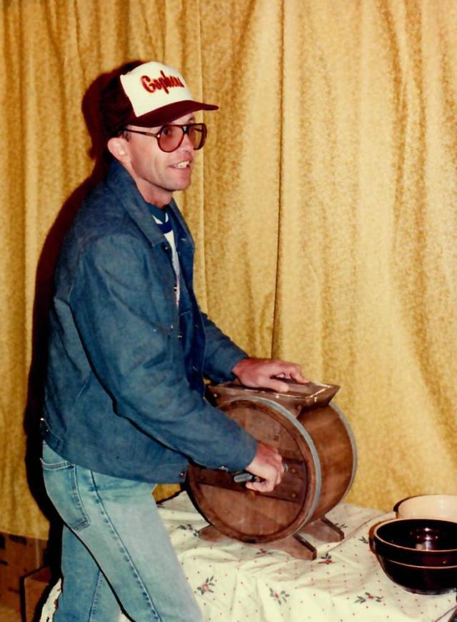 1993 Uffda Day brought together tourists and local Norwegians to celebrate the harvest and enjoying the homemade ice cream and other edible treats demonstrated by the local folks. The scalloped potato supper was served at the Hall for an amazing price of $2.75, others enjoyed the Varme Polse (wiener in lefse) for $1 and the Risengrynsgrot (rice pudding) for fifty cents. A couple of old mule skinners trotted out the team to give the crowd rides around Rutland to see the signs. Twenty-two crafters demonstrated and sold their wares including hardanger, bobbin lace, rosemaling, wheat weaving, potpourri, rope making and others. A clown made balloon animals for the younger visitors and antique farm machinery was exhibited for others to enjoy. The second pet show went well with twenty-five pets which this year included rabbits, hamsters, and a salamander.