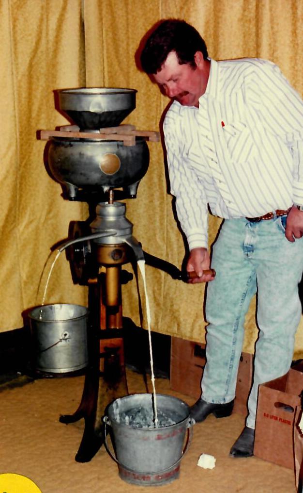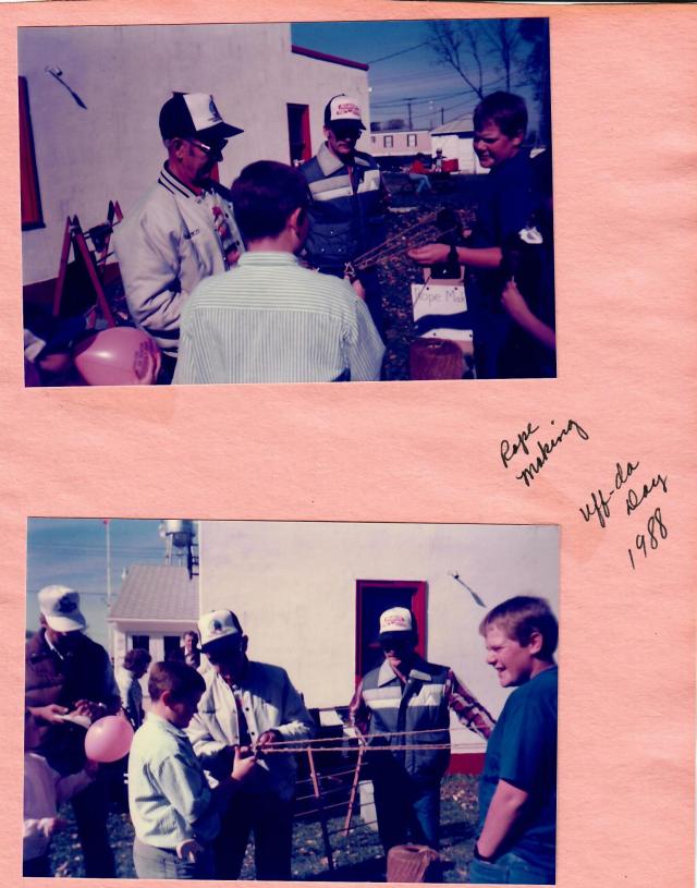 The fourth annual Uffda Day saw record quantities of lefse, rommegrot, krumkake, fattigman, abelskievers, rosettes and rice pudding washed down with gallons of coffeeby those who were hungy for the food. Eight gallons of cream were converted to homemade ice cream. There were demonstrations of rosemaling, quilt-making, sausage stuffing, rope making, cream separating, butter churning and old-time clothes washing. Eight thousand feet of baling twine was wound into rope by the rope-making crew. Forty-eight tractors participated in the antique tractor pull again done in “McLaen’s Meadow” on the west edge of town.