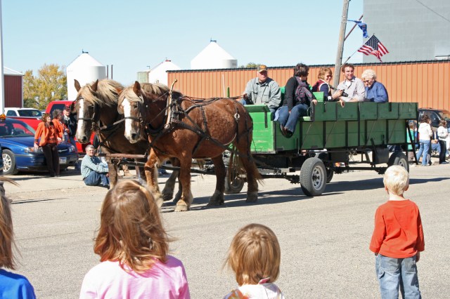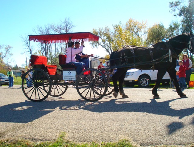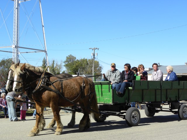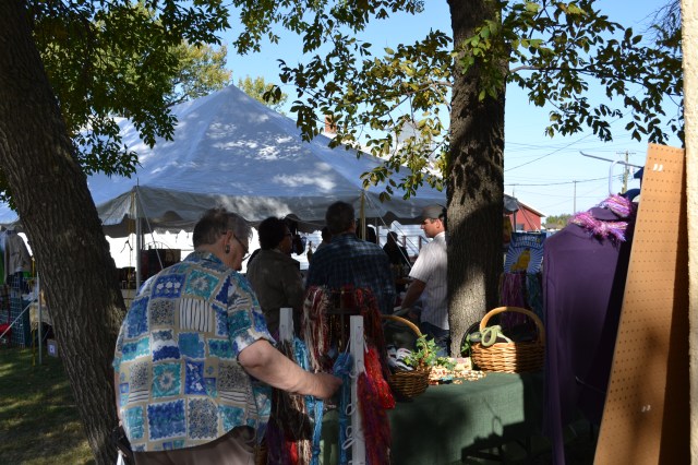 Wine tasting, set up by the ND Grape & wine Association, continued to be popular with attendees. Steffes’ Prairiewood Winery of Elliot, ND, had a booth set up on the south porch of The Old Parsonage and reported a very successful day. Several vendors and demonstrators also reported a good day. Wolfie the clown provided activities for kids of all ages. Doug Spieker and Roy Hildebrand had their high stepping Percheron-Belgian draft horses and a wagon on hand to provide recreational rides and transportation around top. Gay Street was blocked off for the car show and the antique tractors.